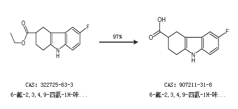 1.通过6-氟-2,3,4,9-四氢-1H-咔唑-3-羧酸乙酯合成6-氟-2,3,4,9-四氢-1H-咔唑-3-羧酸,收率约97%;