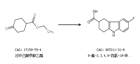 2.通过对环己酮甲酸乙酯合成6-氟-2,3,4,9-四氢-1H-咔唑-3-羧酸