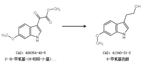 1.通过2-(6-甲氧基-1H-吲哚-3-基)-2-氧代乙酸甲酯合成6-甲氧基色醇