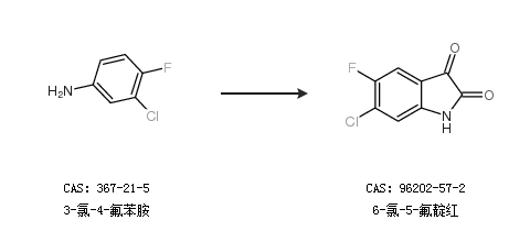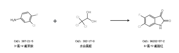 1.通过3-氯-4-氟苯胺和水合氯醛合成6-氯-5-氟靛红