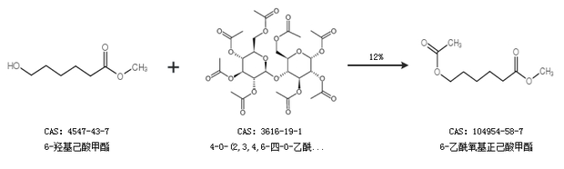 1.通过6-羟基己酸甲酯和4-O-(2,3,4,6-四-O-乙酰基)-β-D-吡喃(型)葡糖基-D-吡喃(型)葡糖四乙酸酯合成6-乙酰氧基正己酸甲酯,收率约12%;