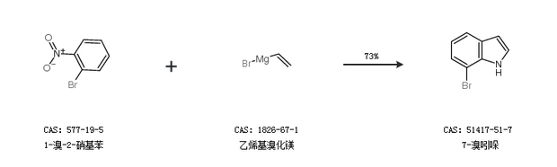1.通过1-溴-2-硝基苯和乙烯基溴化镁合成7-溴吲哚,收率约73%;
