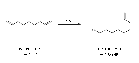 2.通过1,8-壬二烯合成8-壬烯-1-醇,收率约12%;