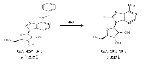 2.通过6-苄基腺苷合成8-溴腺苷,收率约46%;