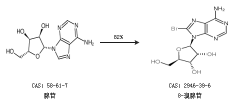 1.通过腺苷合成8-溴腺苷,收率约82%;
