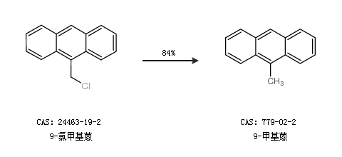 2.通过9-氯甲基蒽合成9-甲基蒽,收率约84%;
