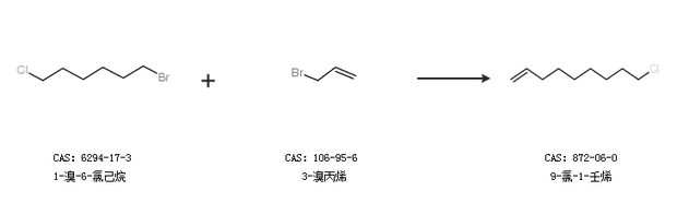 2.通过1-溴-6-氯己烷和3-溴丙烯合成9-氯-1-壬烯