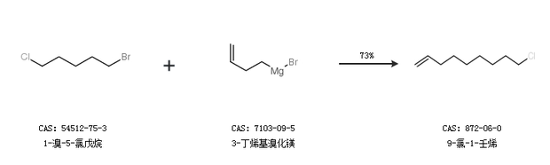 1.通过1-溴-5-氯戊烷和3-丁烯基溴化镁合成9-氯-1-壬烯,收率约73%;