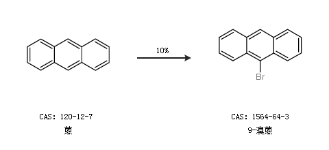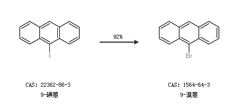2.通过9-碘蒽合成9-溴蒽,收率约92%;