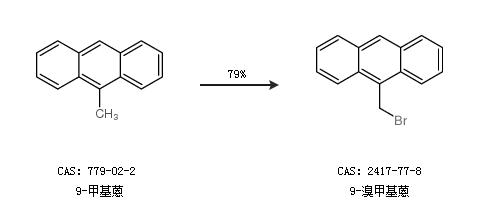 2.通过9-甲基蒽合成9-溴甲基蒽,收率约79%;