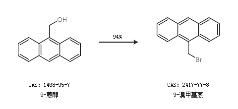 1.通过9-蒽醇合成9-溴甲基蒽,收率约94%;