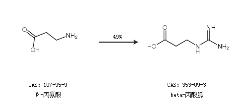 2.通过β-丙氨酸合成beta-丙酸胍,收率约49%;