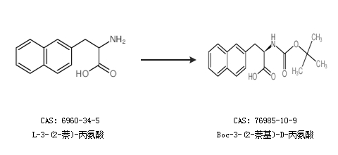 1.通过L-3-(2-萘)-丙氨酸合成Boc-3-(2-萘基)-D-丙氨酸