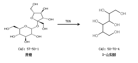 2.通过蔗糖合成D-山梨醇,收率约76%;