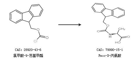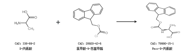 1.通过D-丙氨酸和氯甲酸-9-芴基甲酯合成Fmoc-D-丙氨酸