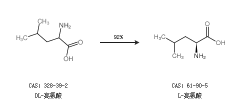 1.通过DL-亮氨酸合成L-亮氨酸,收率约92%;