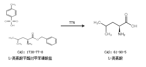 2.通过L-亮氨酸苄酯对甲苯磺酸盐合成L-亮氨酸,收率约77%;