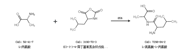 2.通过L-丙氨酸和(S)-(-)-4-异丁基氧氮杂环戊烷-2,5-二酮合成L-亮氨酰-l-丙氨酸,收率约85%;