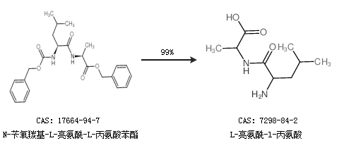 1.通过N-苄氧羰基-L-亮氨酰-L-丙氨酸苯酯合成L-亮氨酰-l-丙氨酸,收率约99%;
