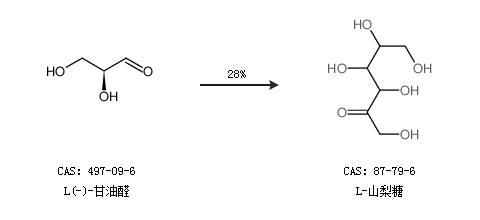 1.通过L(-)-甘油醛合成L-山梨糖,收率约28%;