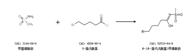 1.通过甲基磺酰胺和5-溴戊酰氯合成N-(Δ-溴代戊酰基)甲磺酰胺
