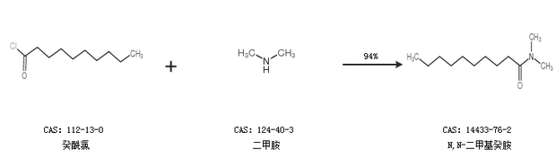 2.通过癸酰氯和二甲胺合成N,N-二甲基癸胺,收率约94%;