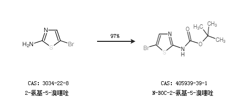 2.通过2-氨基-5-溴噻唑合成N-BOC-2-氨基-5-溴噻唑,收率约97%;