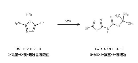 1.通过2-氨基-5-溴-噻唑氢溴酸盐合成N-BOC-2-氨基-5-溴噻唑,收率约92%;