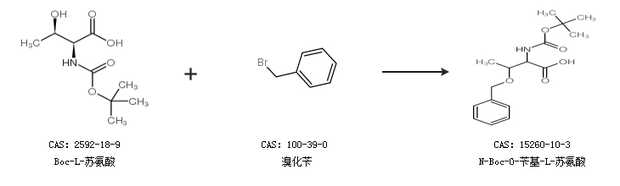 1.通过Boc-L-苏氨酸和溴化苄合成N-Boc-O-苄基-L-苏氨酸