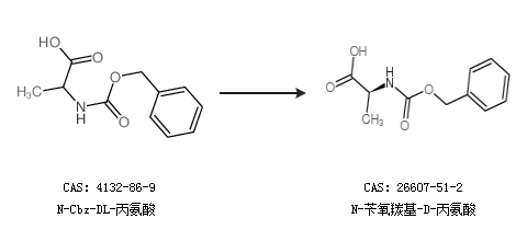 2.通过N-Cbz-DL-丙氨酸合成N-苄氧羰基-D-丙氨酸