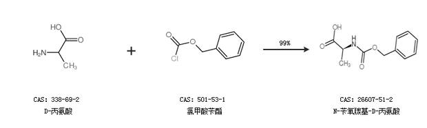 1.通过D-丙氨酸和氯甲酸苄酯合成N-苄氧羰基-D-丙氨酸,收率约99%;
