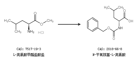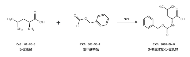 1.通过L-亮氨酸和氯甲酸苄酯合成N-苄氧羰基-L-亮氨酸,收率约97%;