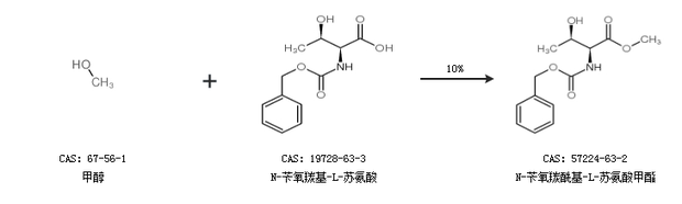 2.通过甲醇和N-苄氧羰基-L-苏氨酸合成N-苄氧羰酰基-L-苏氨酸甲酯,收率约10%;