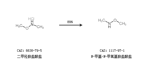 1.通过二甲羟胺盐酸盐合成N-甲基-N-甲氧基胺盐酸盐,收率约89%;