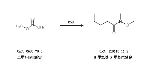 2.通过二甲羟胺盐酸盐合成N-甲氧基-N-甲基戊酰胺,收率约65%;