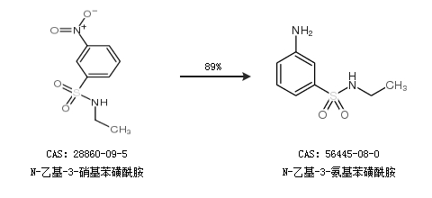 1.通过N-乙基-3-硝基苯磺酰胺合成N-乙基-3-氨基苯磺酰胺,收率约89%;