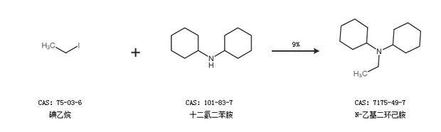 1.通过碘乙烷和十二氢二苯胺合成N-乙基二环己胺,收率约9%;