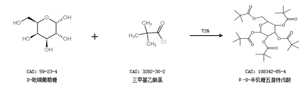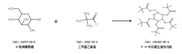 1.通过D-吡喃葡萄糖和三甲基乙酰氯合成β-D-半乳糖五溴特戊酸