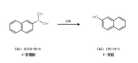2.通过2-萘硼酸合成β-萘酚,收率约10%;