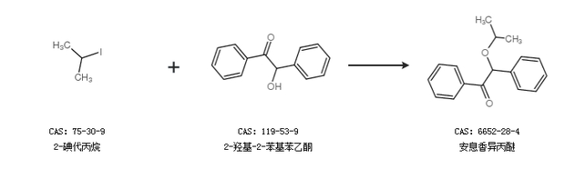 1.通过2-碘代丙烷和2-羟基-2-苯基苯乙酮合成安息香异丙醚