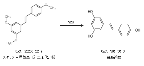 1.通过3,4'',5-三甲氧基-反-二苯代乙烯合成白藜芦醇,收率约92%;