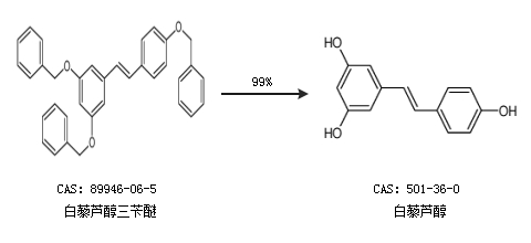 2.通过白藜芦醇三苄醚合成白藜芦醇,收率约99%;