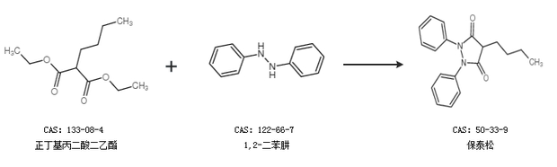 1.通过正丁基丙二酸二乙酯和1,2-二苯肼合成保泰松