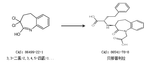 2.通过3,3-二氯-2,3,4,5-四氢-1H-<1>苯并氮杂卓-2-酮合成贝那普利拉