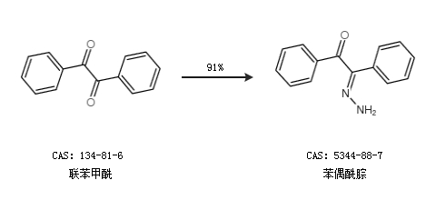 1.通过联苯甲酰合成苯偶酰腙,收率约91%;
