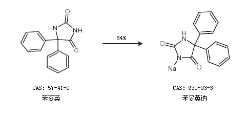 1.通过苯妥英合成苯妥英钠,收率约84%;