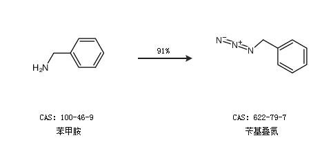 1.通过苯甲胺合成苄基叠氮,收率约91%;