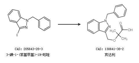 1.通过3-碘-1-(苯基甲基)-1H-吲唑合成宾达利