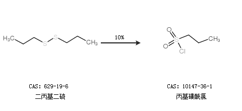 1.通过二丙基二硫合成丙基磺酰氯,收率约10%;