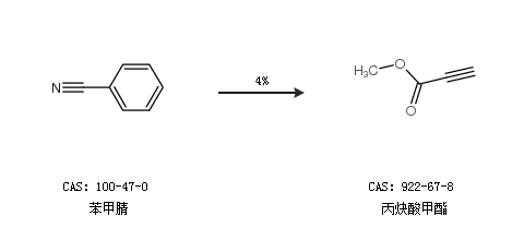 2.通过苯甲腈合成丙炔酸甲酯,收率约4%;